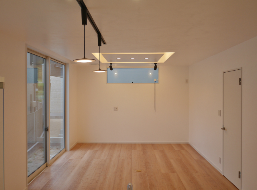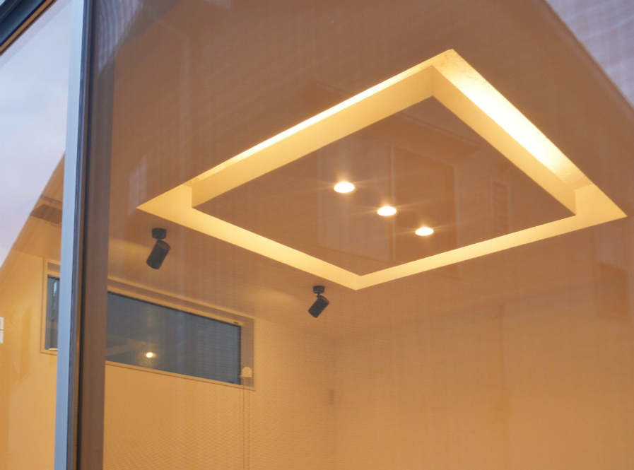 ご家族も参加して造り上げた新築一戸建てです。リビングの壁・天井はこだわりの漆喰で仕上げました。