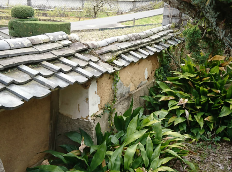 瓦が古く、壁の漆喰も剥がれている塀を改修しました。